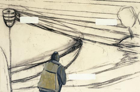 "Teilchenschauer 9", 2003, Acryl und Kohle auf Leinwand,60 x 90 cm -